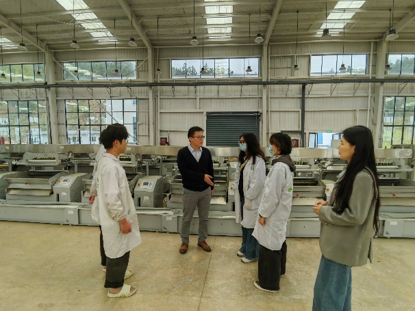 上午,刘建军院长一行抵达贵州三都阳皓农业科技有限公司(图1),与在此实习的11名学生进行了座谈交流。刘院长勉励学生珍惜实习机会并摆正心态,做到“多看、多问、多学、多思考”,将课堂理论与企业实践紧密结合,为以后毕业步入社会奠定基础;陈涛林主任鼓励学生培养宏观思维,深入理解生产车间全流程管理及企业运营模式;张静老师希望学生持续坚持,培养乐观心态,保证人身安全,不仅要提升专业实践技能,更要积累为人处事的经验。随后,学生们逐一发言,分享实习收获并提出遇到的困难,学院老师与企业负责人现场沟通,及时协调解决。座谈结束后,团队参观了企业白茶生产可调节光照的萎凋车间、刺梨果冻干及刺梨红茶包装车间,品鉴了企业新开发的刺梨红茶,并就其冲泡技艺及茶叶感官品质进行深入探讨;茶学院老师团队针对白茶和刺梨红茶的加工工艺优化及品质提升,以及后期利用夏秋茶原料开发抹茶产品,提出了具体的发展建议。